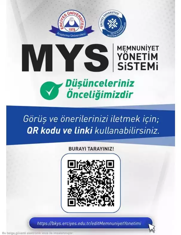 Memnuniyet Yönetim Sistemi (MYS) Formu için tıklayınız.