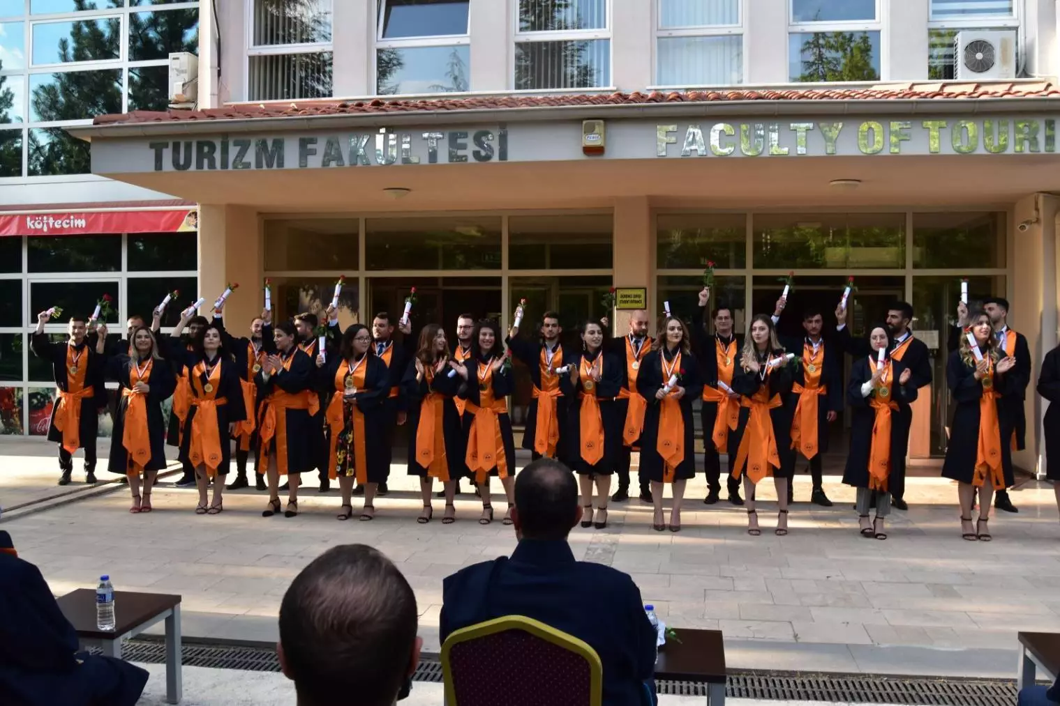 Bu yıl 12. dönem mezunlarını veren Fakültemizde, 8 Temmuz 2021 tarihinde mezuniyet töreni gerçekleştirilmiştir. Törende pandemi nedeniyle bazı önlemler alınmış ve sosyal mesafe konusuna özen gösterilmiştir. Mezuniyet töreni Turizm Fakültesi Dekanı Sayın Prof. Dr. Ömer ŞANLIOĞLU’nun ve Erciyes Üniversitesi Rektör Yardımcısı Sayın Prof. Dr. Mehmet Sıtkı İLKAY’ın açılış konuşmaları ile başlamış ve ardından saygıdeğer hocalarımızın Fakültemizde dereceye giren öğrencilerimizin kuşaklarını bağlaması ve diplomalarını vermeleri ile devam etmiştir. Sonrasında ise öğretim elemanları tarafından tüm öğrencilerin kuşakları bağlanmış ve diplomaları takdim edilmiştir. Mezuniyet töreni kesilen mezuniyet pastasının ardından sonra ermiştir.