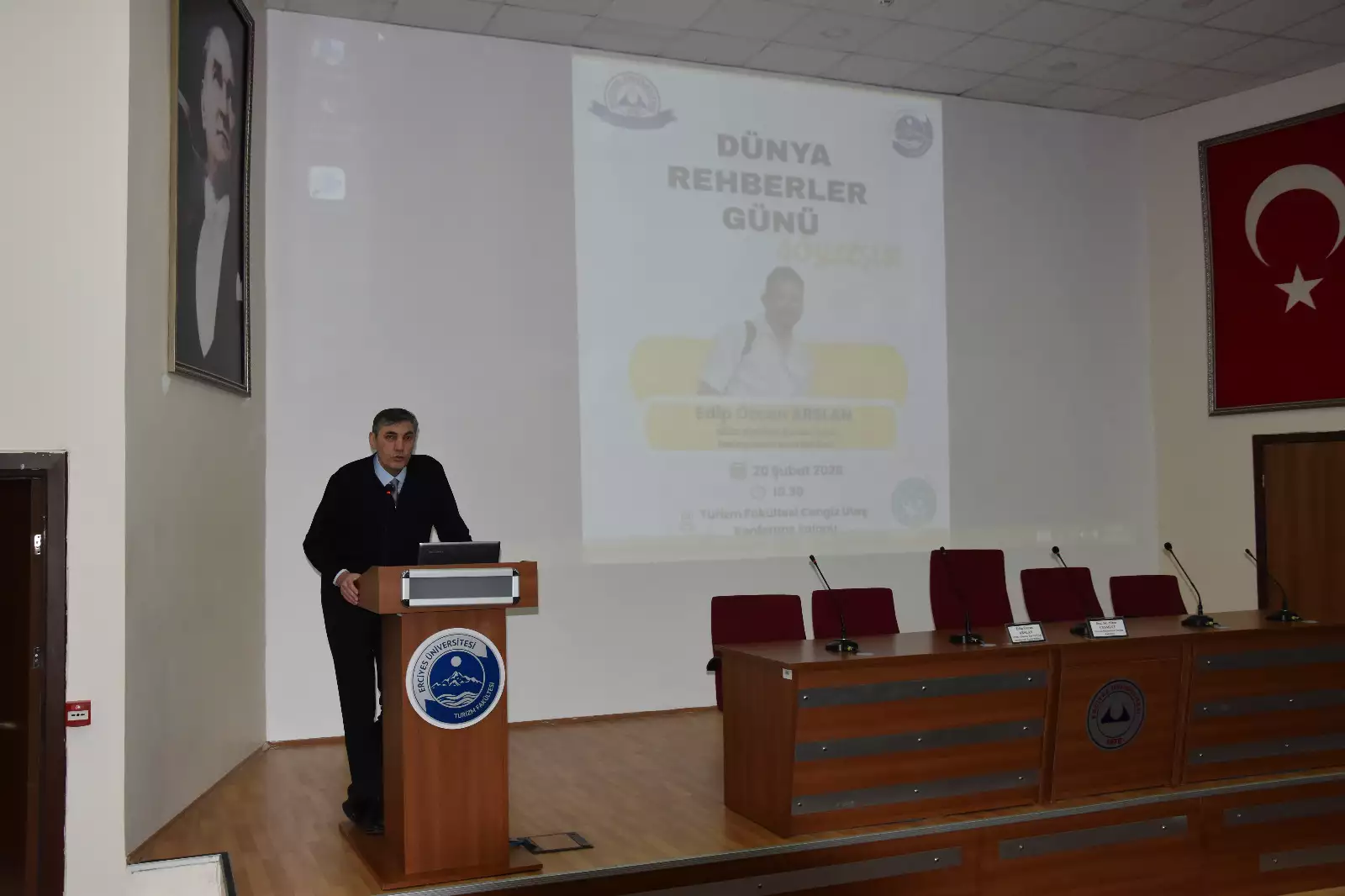 20 Şubat tarihinde Prof. Dr. Cengiz Utaş Konferans Salonu’nda, 21 Şubat Dünya Rehberler Günü etkinlikleri kapsamında bir söyleşi programı düzenlendi. Programa, Profesyonel Turist Rehberi ve NERO Yönetim Kurulu Üyesi Edip Özcan Arslan konuşmacı olarak katıldı.